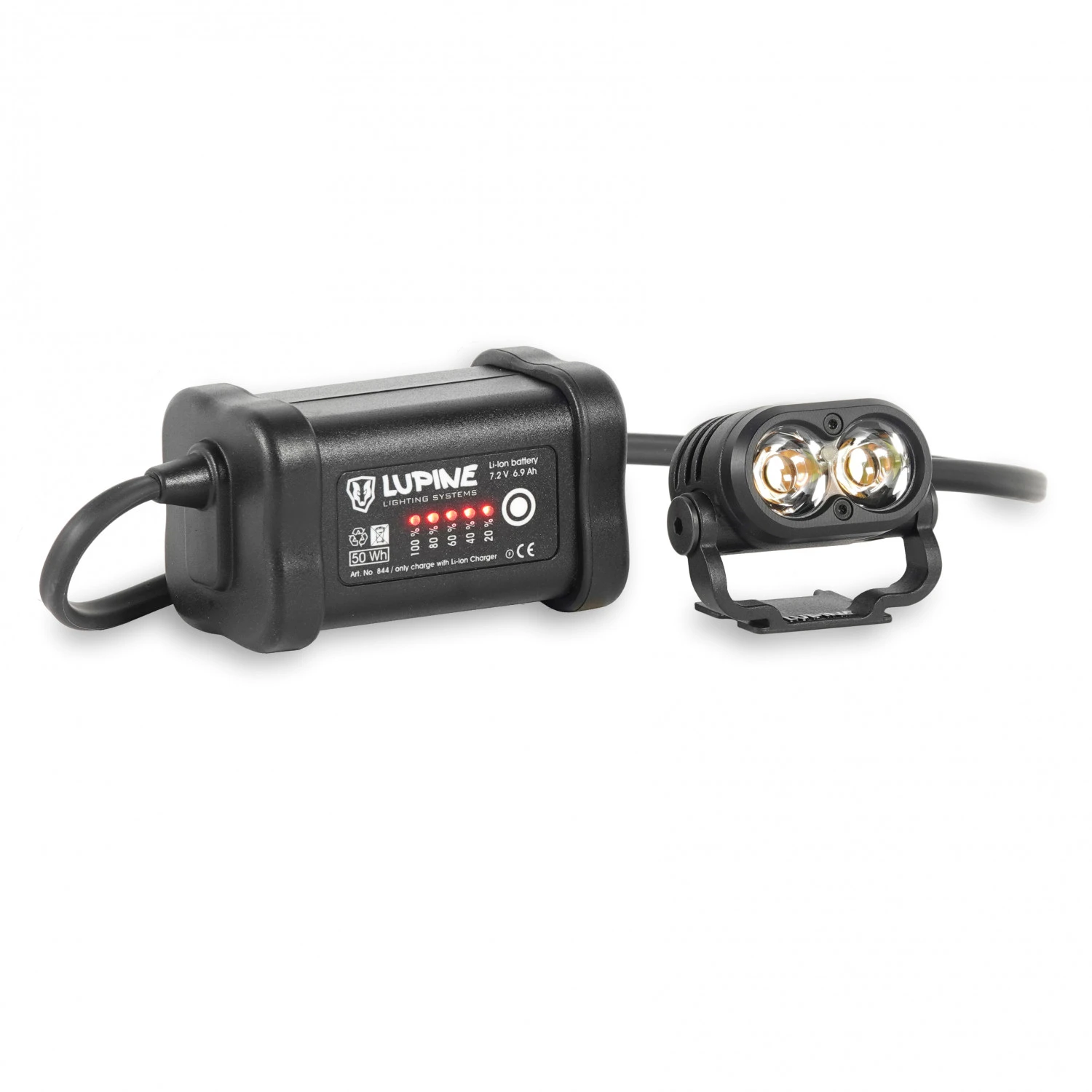 Dank des leistungsfähigen 6,9 Ah Akku können auch lange Touren unternommen werden. Aufgrund der Größe ist es nicht möglich ihn am Helm zu montieren. Der Akku kann daher im Rucksack verstaut werden.