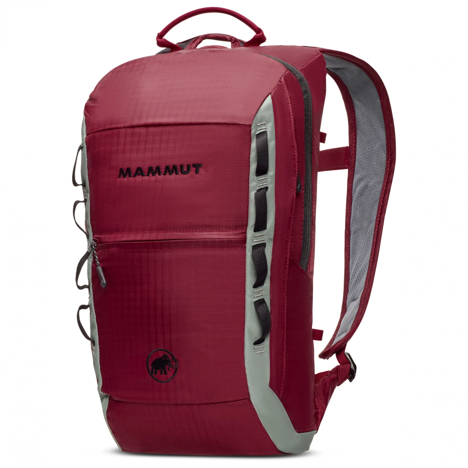 390 Gramm. So viel wiegt der perfekte Partner für die nächste Klettertour – der Neon Light 12 von Mammut. Damit der Kletterrucksack beim Hochschauen und Chalken nicht stört, ist er besonders kurz, schmal und flach geschnitten. Außerdem ermöglicht er auf diese Weise viel Bewegungsfreiheit für schwierige Bewegungen. Gleichzeitig bietet das Leichtgewicht genügend Platz, um sein Gear unterzubringen und sicher zu verstauen. Über einen großen Frontreißverschluss erreicht man das gut strukturierte Innenfach. Besonders praktisch sind hier die innen angebrachten Materialschlaufen, an denen man Expressen und Karabiner schnell und griffbereit unterbringen kann. Als zusätzliche Materialfixierung dienen die Daisy-Chain-Schlaufen außen, so findet wirklich alles Wichtige seinen Platz. Durchdachte Details, wie die 40 cm lange Leine zum Sichern der Kamera und das separate Trinkfach, machen den Neon Light komplett – ultraleicht, klein verpackbar und mit kurzem, schlankem Körper sowie integrierten Materialschlaufen – ideal zum Fels- oder Eisklettern.