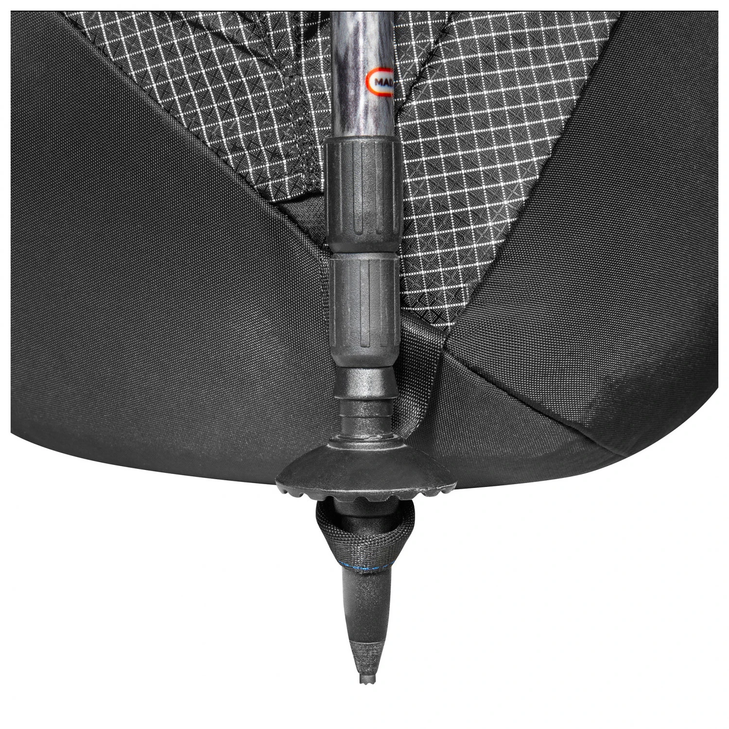 Im abgetrennten Bodenfach kannst Du den Schlafsack unterbringen und das große Hauptfach ist sowohl von oben als auch von vorne zugänglich. Das erleichtert das Packen und gewährt einen guten Überblick über die Ausrüstung. Außen ist der Rucksack mit zahlreichen Materialschlaufen ausgestattet, an denen Du leichte Ausrüstungsgegenstände befestigen kannst.